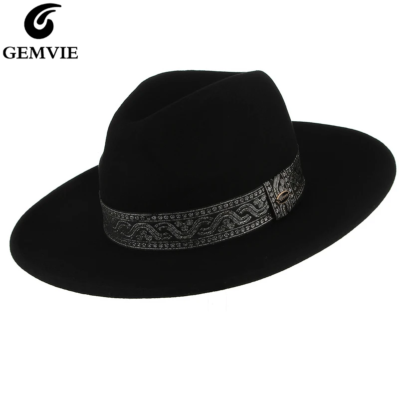 Special Offer GEMVIE wysokiej jakości Unisex kapelusze 100% kapelusz z filcu wełnianego dla mężczyzn kobiet szerokim rondem klasyczne Jazz czapka w stylu Vintage taśma do drukarek Discount 15% Today!