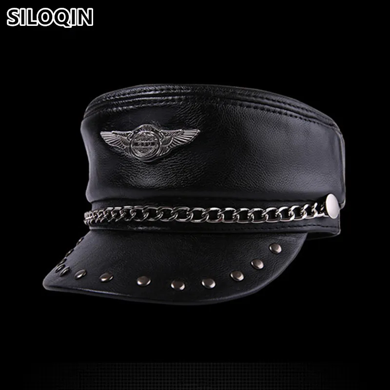 Special Offer SILOQIN prawdziwy skórzany kapelusz elegancka skóra bydlęca wojskowe czapki dla mężczyzn kobiety osobowość czapki hip hopowe czapka typu snapback płaska czapka Unisex Discount 22% Today!