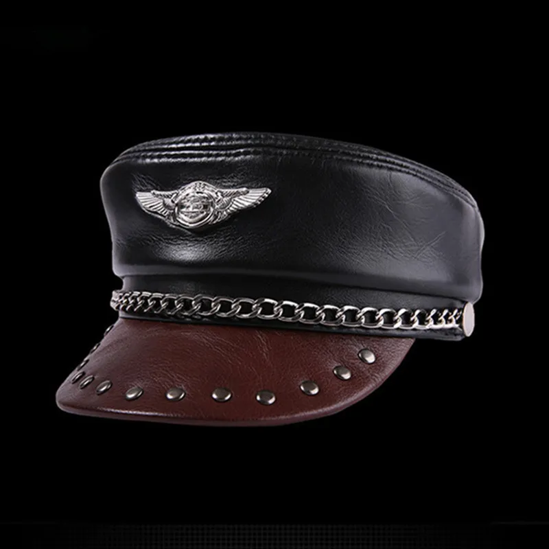 Product Name: SILOQIN prawdziwy skórzany kapelusz elegancka skóra bydlęca wojskowe czapki dla mężczyzn kobiety osobowość czapki hip hopowe czapka typu snapback płaska czapka Unisex