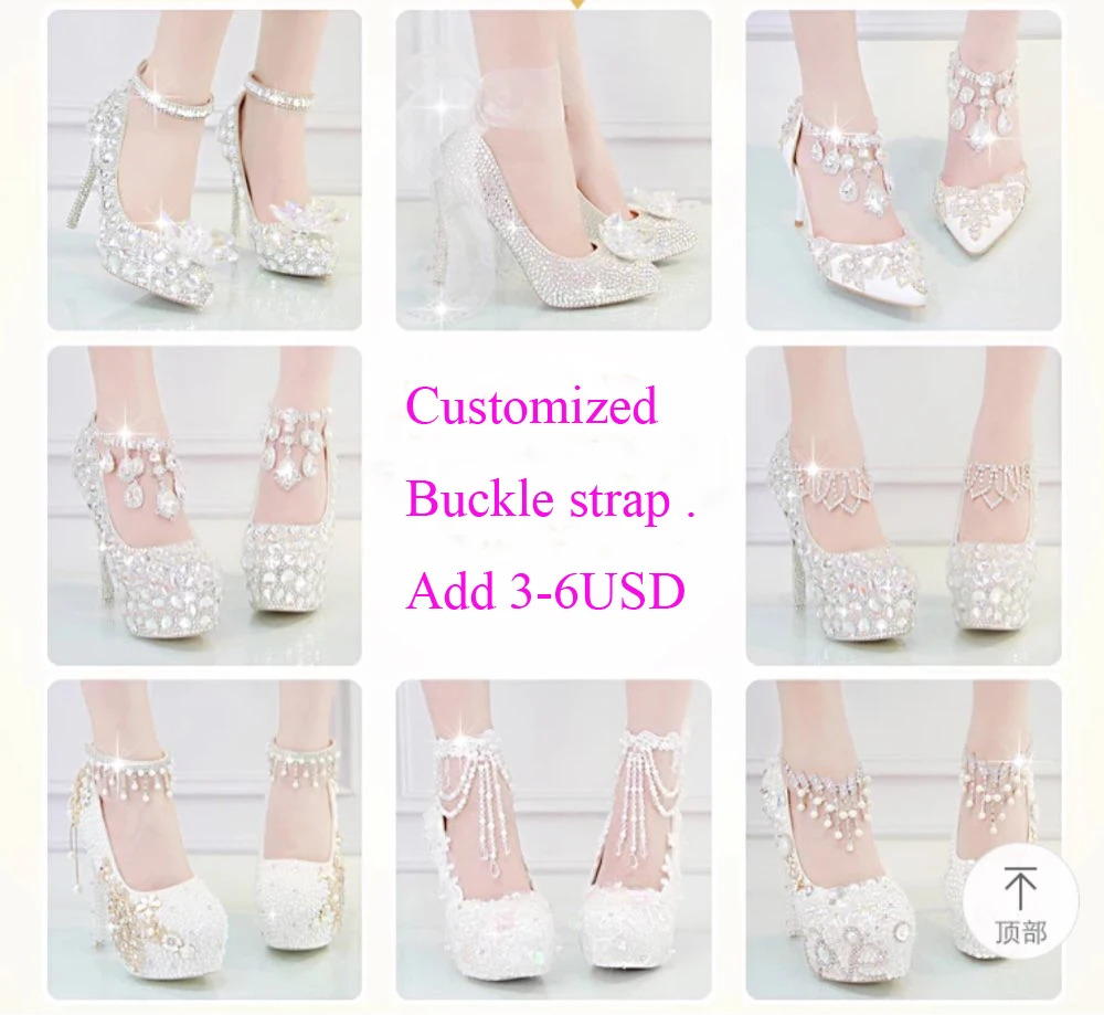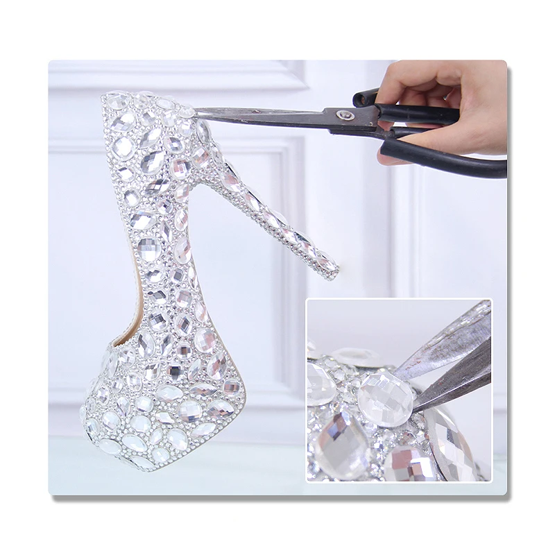 Product Name: Buty z kryształkami kopciuszek damskie obcasy na wieczorne Party błyszczące okrągłe Toe niestandardowe srebrne pompy ślubne Rhinestone rozmiar 9