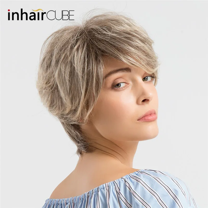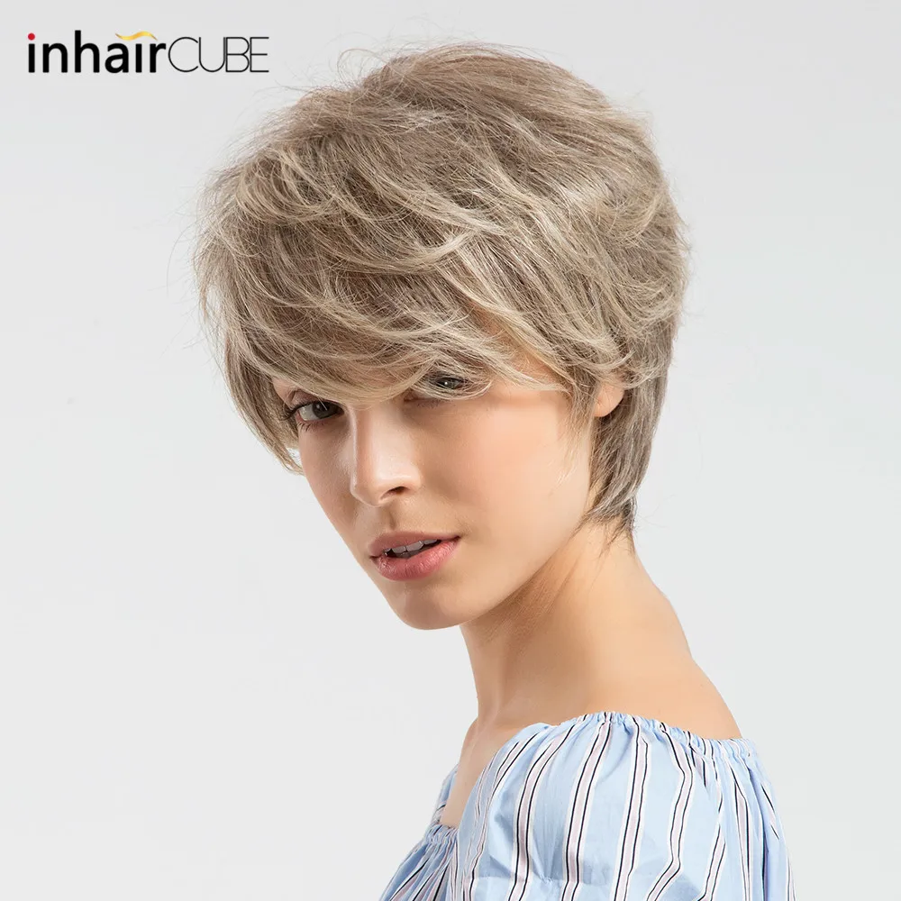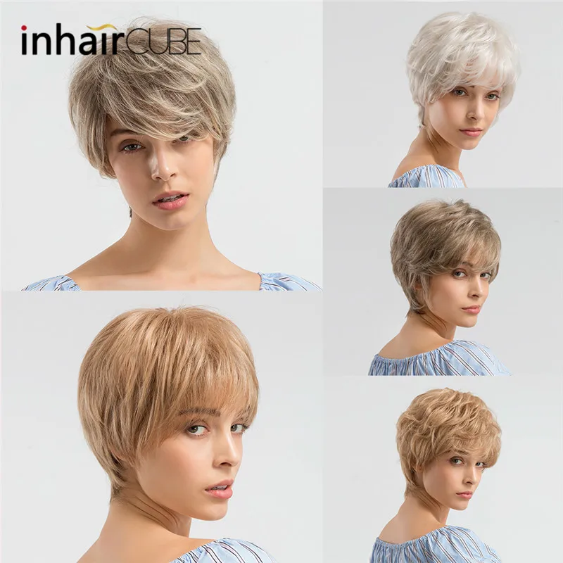 Product Name: INHAIR CUBE syntetyczne mieszanki peruki naturalne fale krótkie peruki dla kobiet Fluffy Ombre ludzki włos peruka oddychająca czapka z peruką
