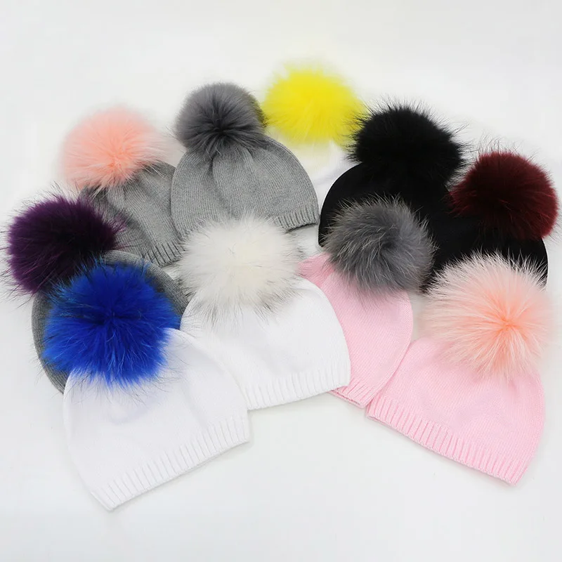 Product Name: GZHilovingL dla dzieci dziewczyny chłopcy zimowe ciepłe czapki czapka z futra piłka pomponowa dla dzieci dziecka miękkie stałe 100 bawełna dziergana czapka Skullies