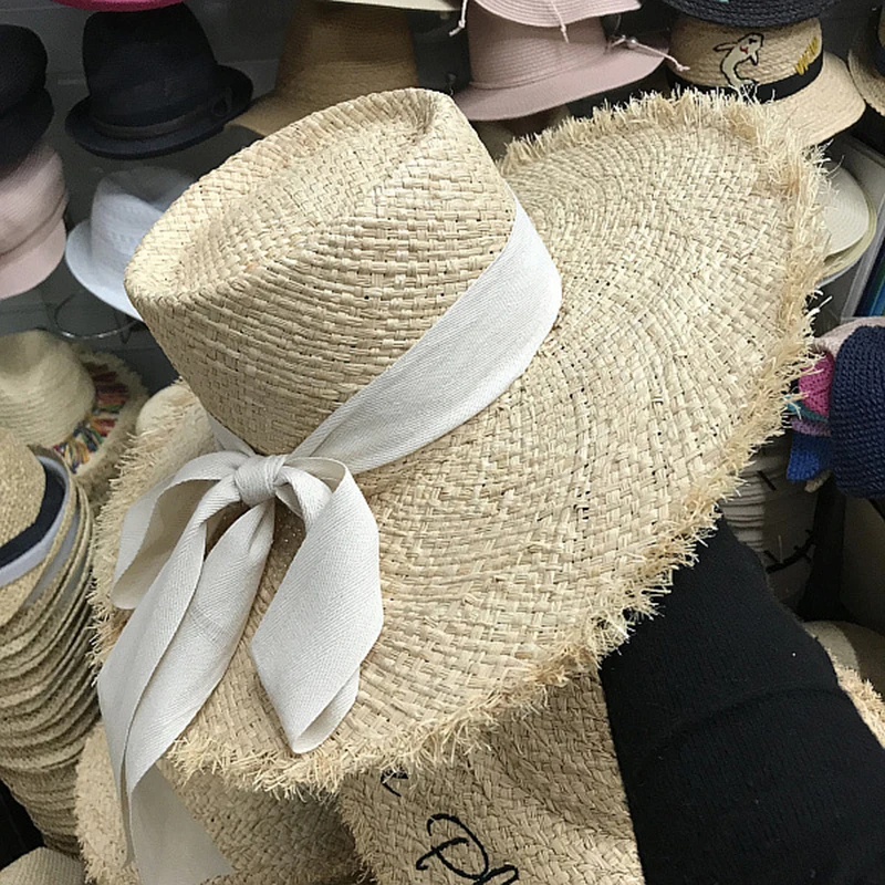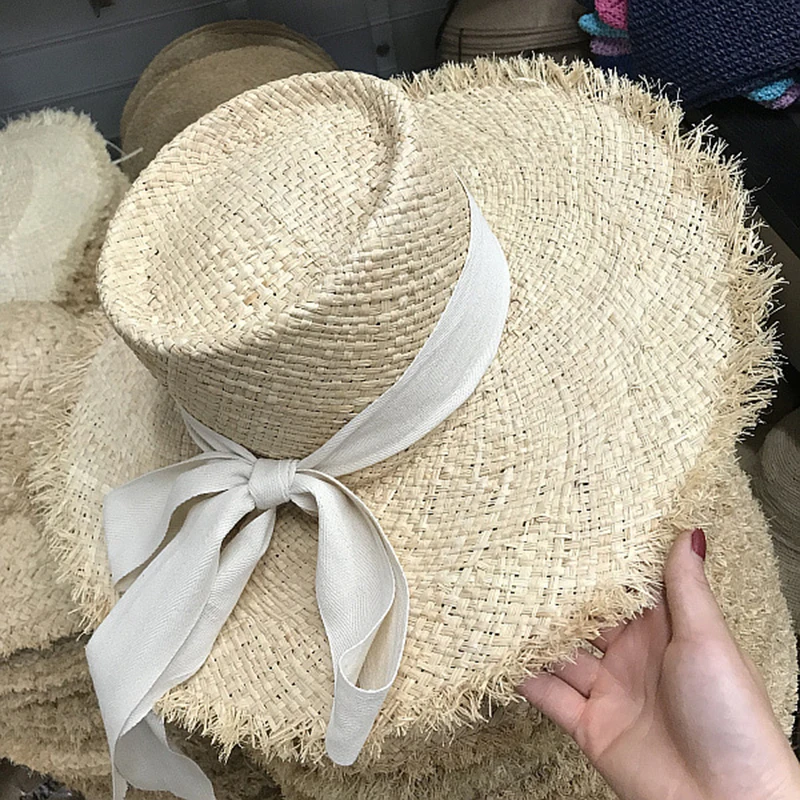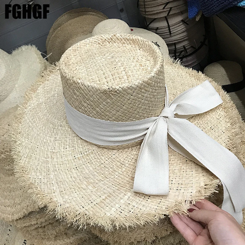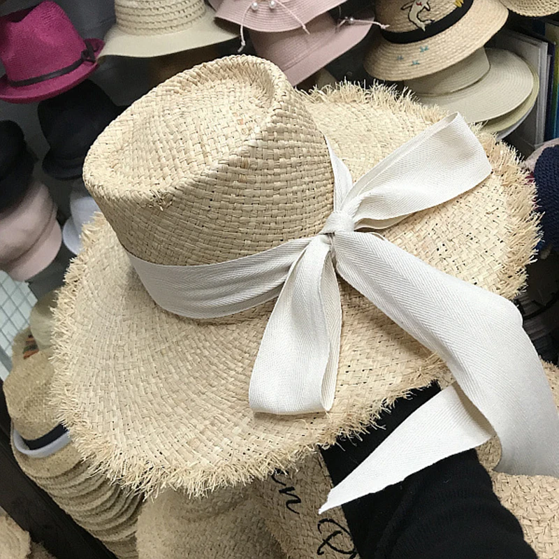 Special Offer Naturalne kobiety kapelusz słońce rafia długi czarny beżowy wstążki z kokardką plaży słońce kapelusz panie frędzlami słomkowy kapelusz z szerokim rondem lato podróży kapelusz czapka Discount 30% Today!