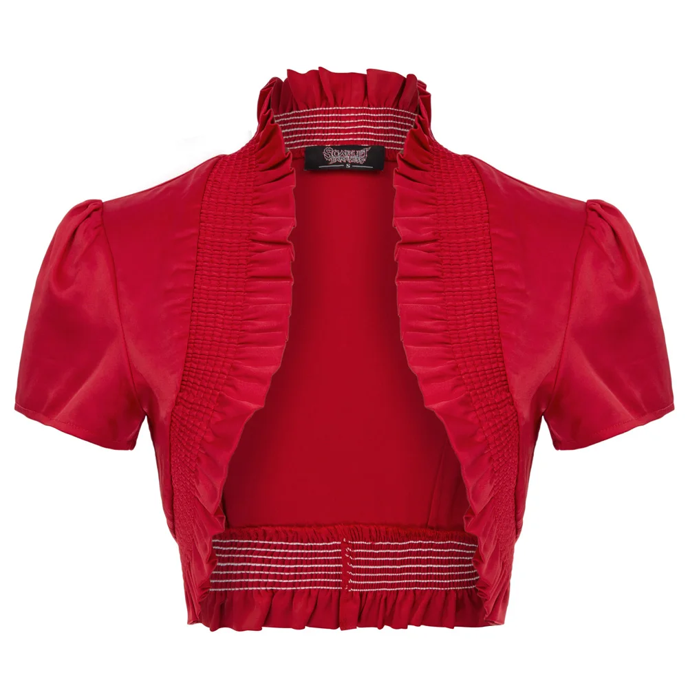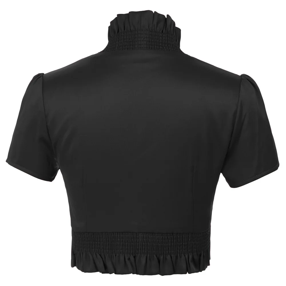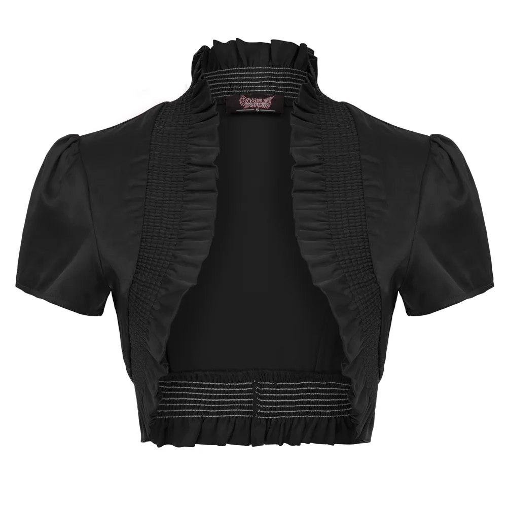 Special Offer W stylu Vintage Retro czapka rękaw stanąć kołnierz otwórz przód potargane satynowe Bolero Discount 30% Today!
