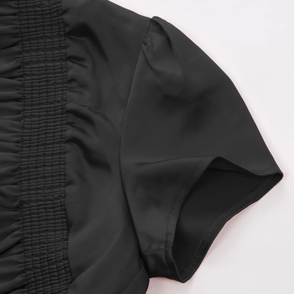 Product Name: W stylu Vintage Retro czapka rękaw stanąć kołnierz otwórz przód potargane satynowe Bolero