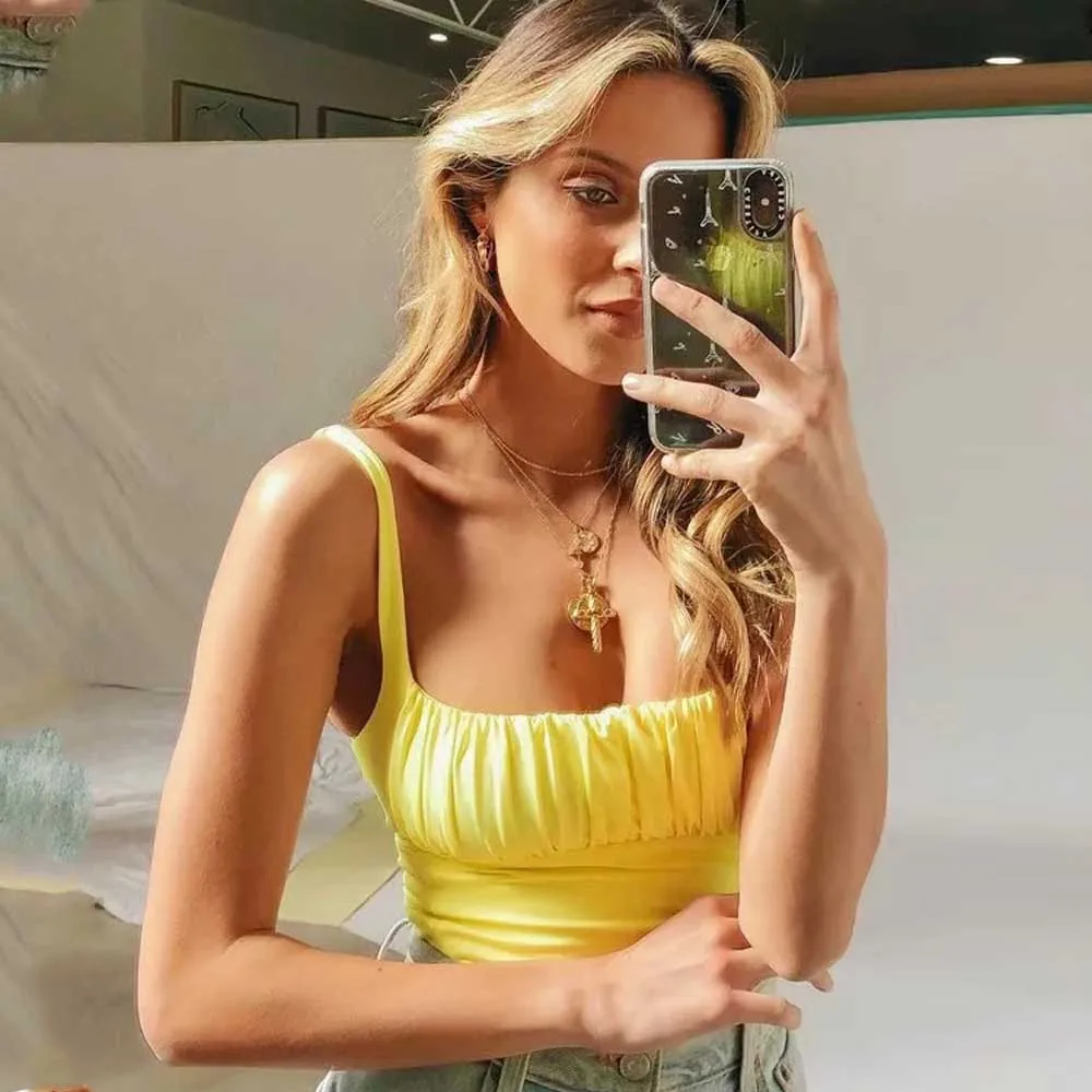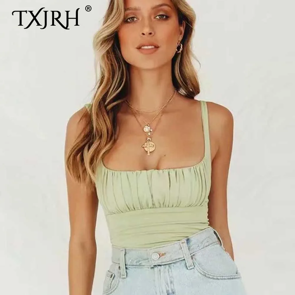 Product Name: TXJRH Sexy kwadratowy kołnierzyk sweter krotnie odsłonięty pępek wąska krótka Tank moda koreański kobiety bluzki bez rękawów 7 cukierkowe kolory