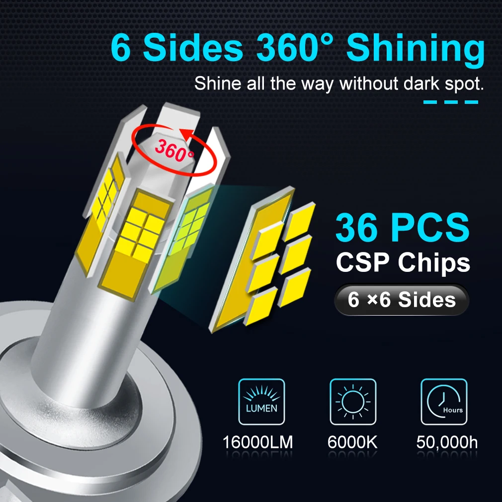 Product Name: 2 sztuk 36SMD CSP 16000LM H1 H7 Led żarówki reflektorów samochodowych H11 H3 9005 HB3 9006 HB4 lampa samochodowa 52W Canbus nie błąd 3D 360 ° żarówka LED