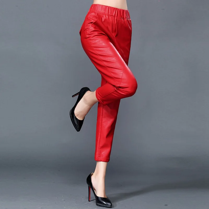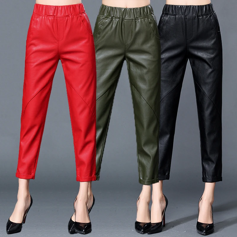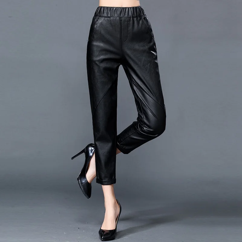 Special Offer Skórzane spodnie skórzane damskie 2020 nowa jesienna i odzież zimowa wysokiej talii dziewięć spodni owcza skóra stopy luźne spodnie haremowe Discount 32% Today!