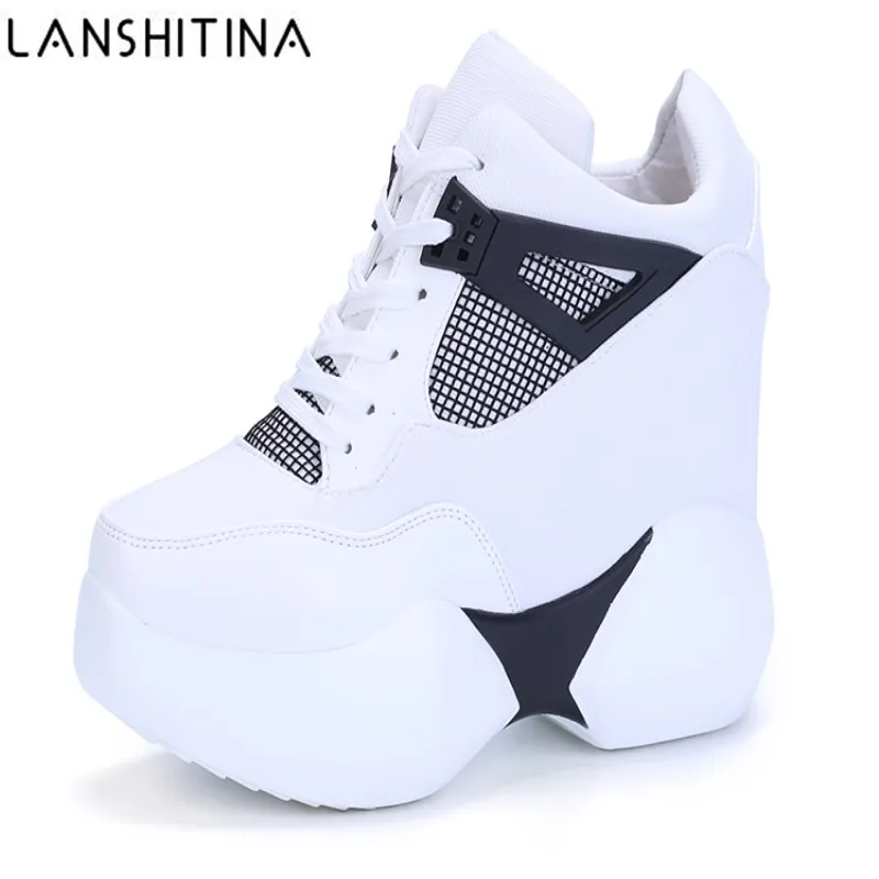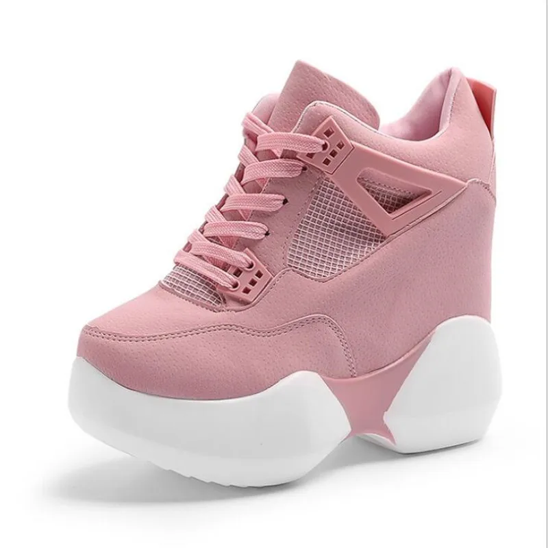 Special Offer 2019 damskie buty na wysokiej platformie oddychające buty z poliuretanu kobiety wysokość zwiększenie buty 12CM kliny gruba podeszwa trenerzy damskie trampki Discount 33% Today!