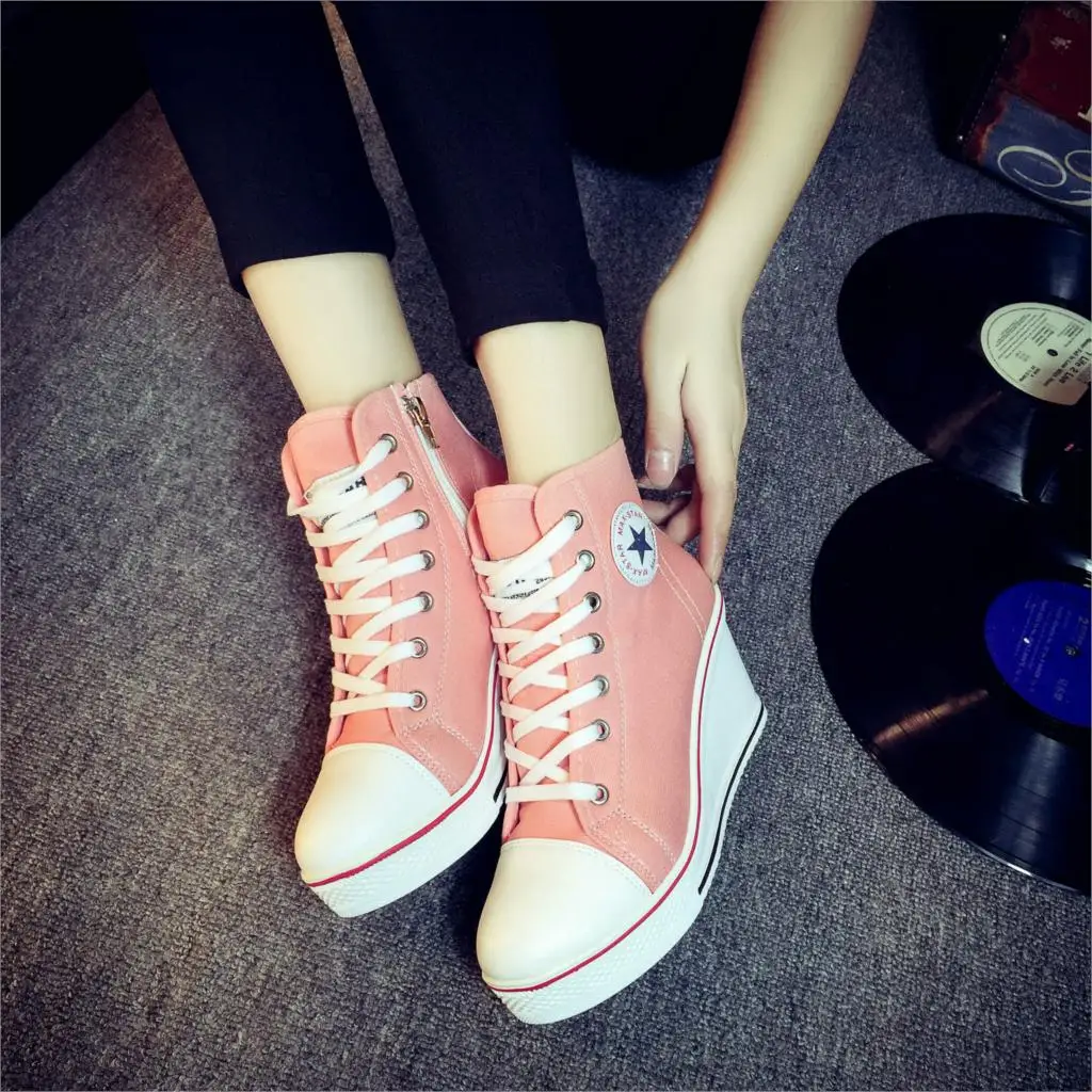 Special Offer Dropshipping kobieta na co dzień trenerzy tenis buty na koturnie platformy wysokie obcasy tenisówki damskie kliny buty za kostkę Discount 40% Today!