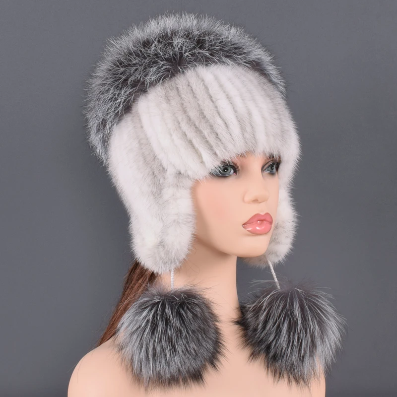 Product Name: Naturalne futro kapelusz dla kobiet prawdziwe futro z norek i futra lisa ręcznie robione buty zimowe kobiet czapka z prawdziwej futro pokryte czapki duże lisa czapki z futrzanym pomponem