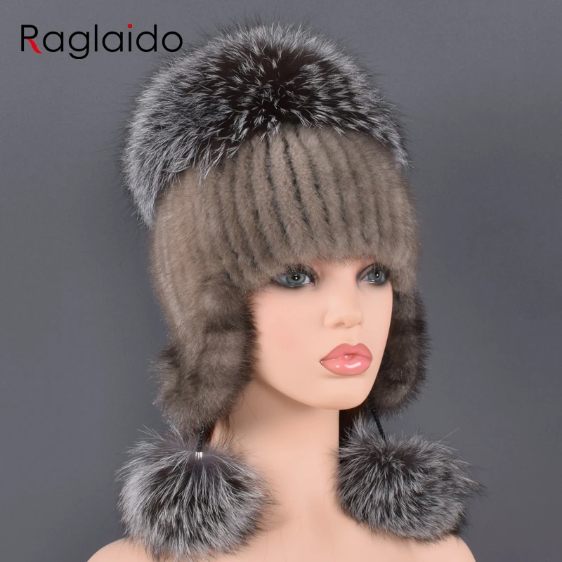 Special Offer Naturalne futro kapelusz dla kobiet prawdziwe futro z norek i futra lisa ręcznie robione buty zimowe kobiet czapka z prawdziwej futro pokryte czapki duże lisa czapki z futrzanym pomponem Discount 40% Today!