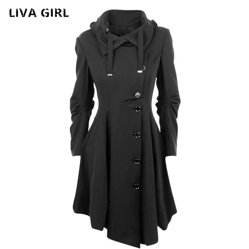 Product Name: 2017 moda długi średniowieczny wykop wełniany płaszcz kobiety zima czarny stojak kołnierz gotycki płaszcz elegancki płaszcz damski Vintage kobieta