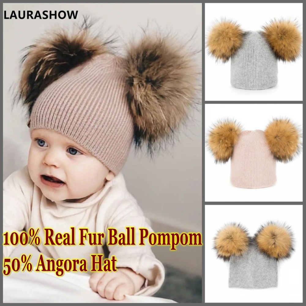 Special Offer LAURASHOW 2019 jesień zima dziecko czapka 14cm prawdziwe futro pompony ciepły sen Angora sierść królika Cap dzieci odzież akcesoria kapelusz Discount 40% Today!