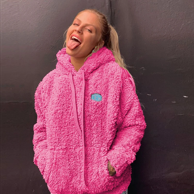 Product Name: Rapwriter dorywczo cukierki kolor z długim rękawem luźne Furry kapturem kobiet 2019 jesień zima Harajuku ciepła bluza Pullover góry kieszeń
