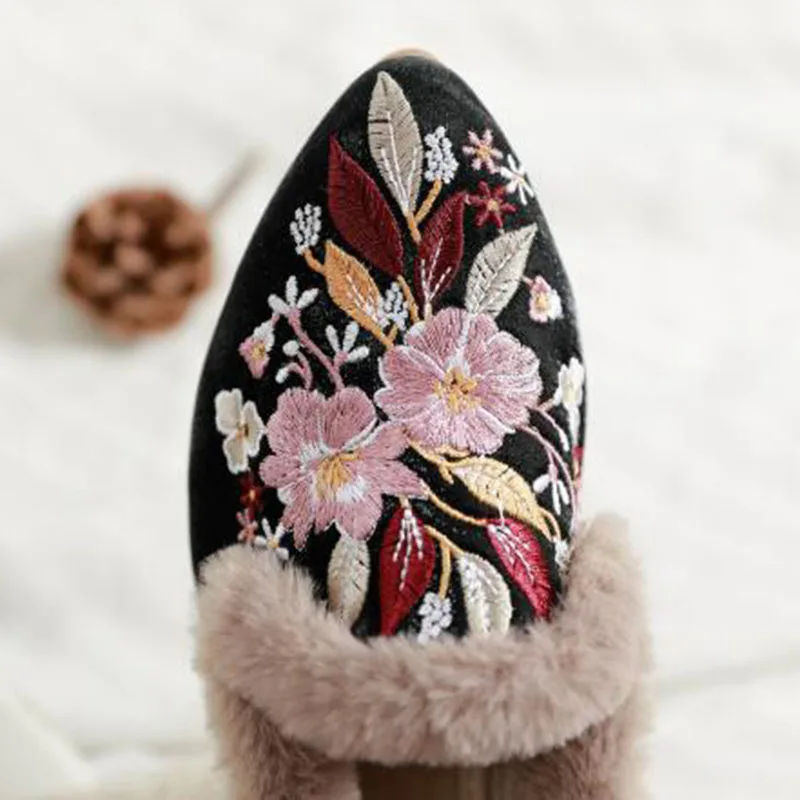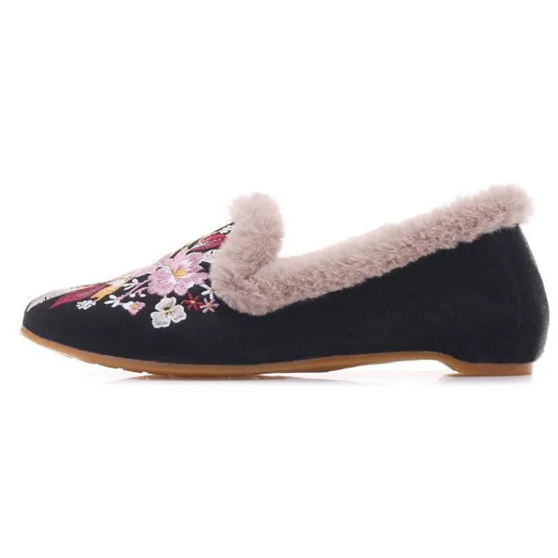 Product Name: THEAGRANT haftować buty zimowe kobieta ciepłe futro z polaru na co dzień kobiety mieszkania mokasyny etniczny Slip on panie chiński buty WFS2015