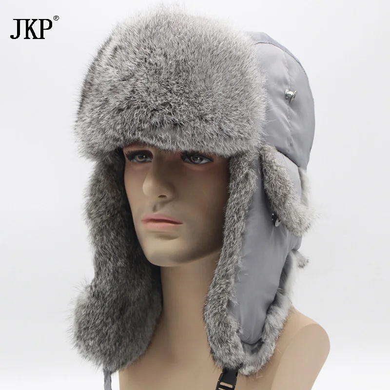 Special Offer Bomber Trapper czapki gruby zimowy ciepły kapelusz z futra króliczego Rex czapki zimowe czapki nauszne ushanka rosyjski dla mężczyzn Discount 49% Today!