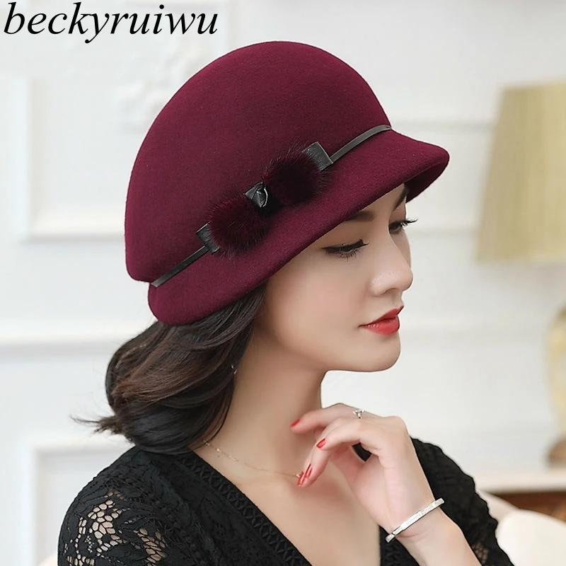 Special Offer Beckyruiwu prezent dla mamy Lady jesienno zimowa moda wełniane Cloche kapelusze kobieta Party formalna bluzka klasy 100% kapelusz z filcu wełnianego Cap Discount 50% Today!