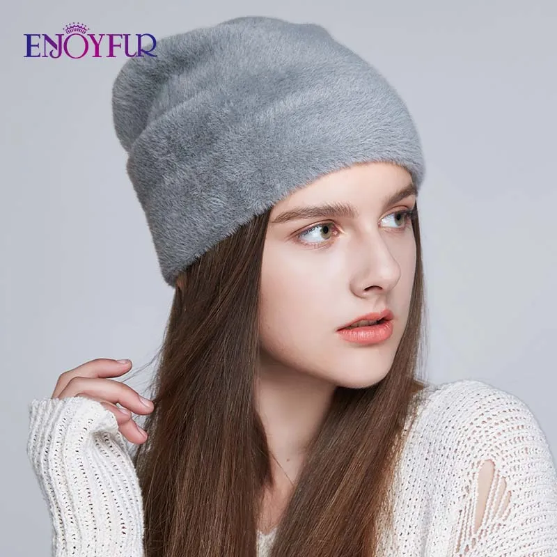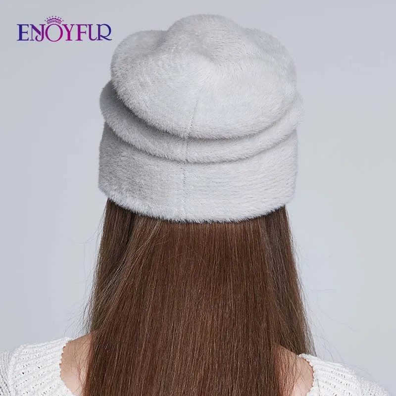 Special Offer ENJOYFUR damskie czapki zimowe imitują wełniane grube czapki dla kobiet jednolite kolory nowe marki czaszki czapki Discount 52% Today!