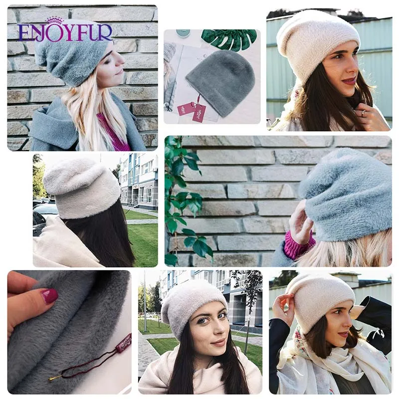 Product Name: ENJOYFUR damskie czapki zimowe imitują wełniane grube czapki dla kobiet jednolite kolory nowe marki czaszki czapki