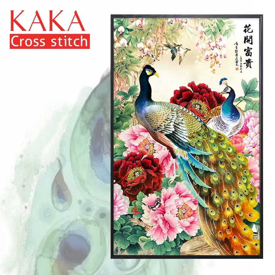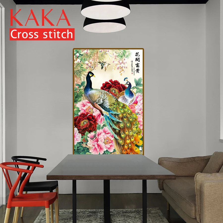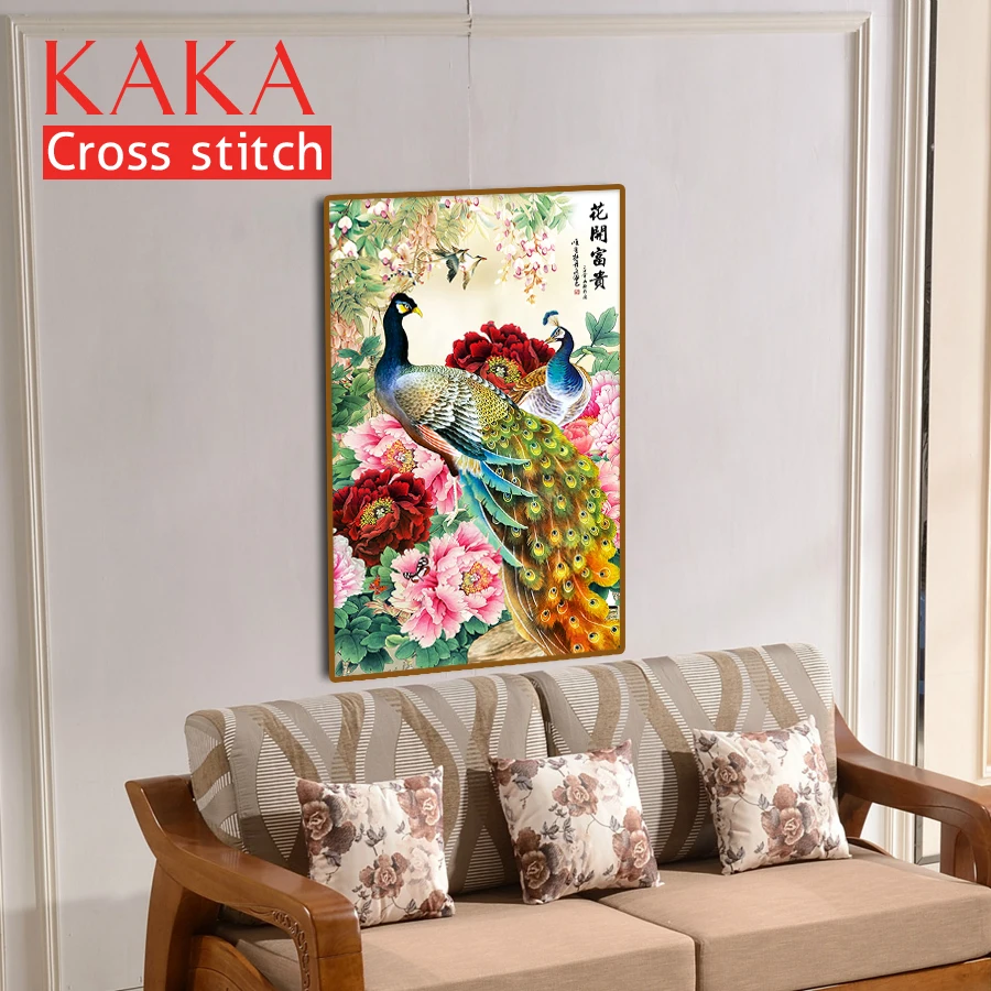 Special Offer KAKA Cross zestaw do szycia zestawy do robótek ręcznych z nadrukowany wzór, płótno 11CT, dekoracja do domu lub ogrodu, kwiaty paw Discount 54% Today!