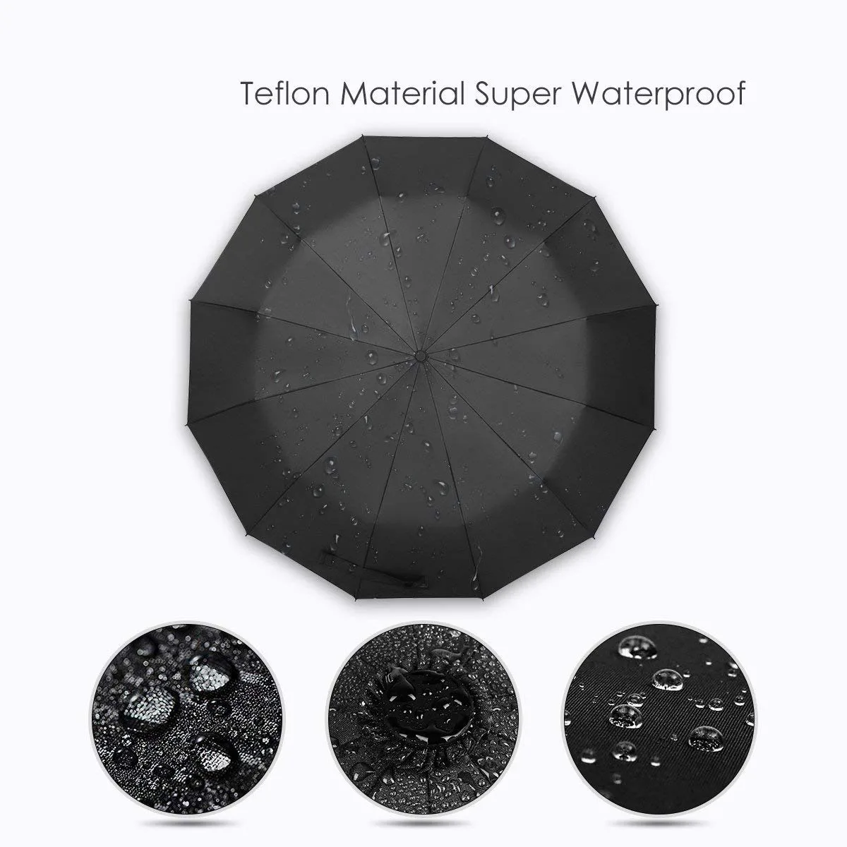Special Offer Promocja! 12 żeber wiatroodporny parasol podróżny z baldachimem teflonowym, wydłużony uchwyt z automatyczne otwieranie zamykanie przycisku, kompaktowy Protec Discount 12% Today!