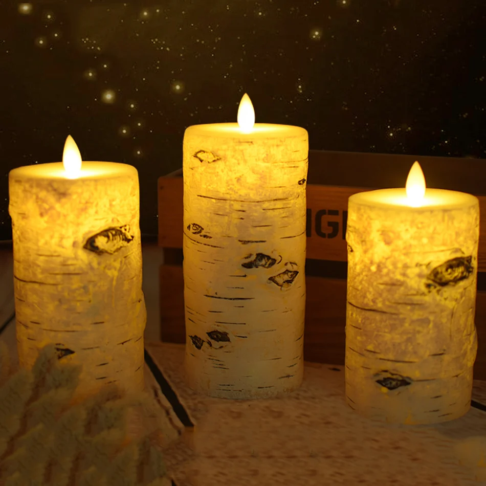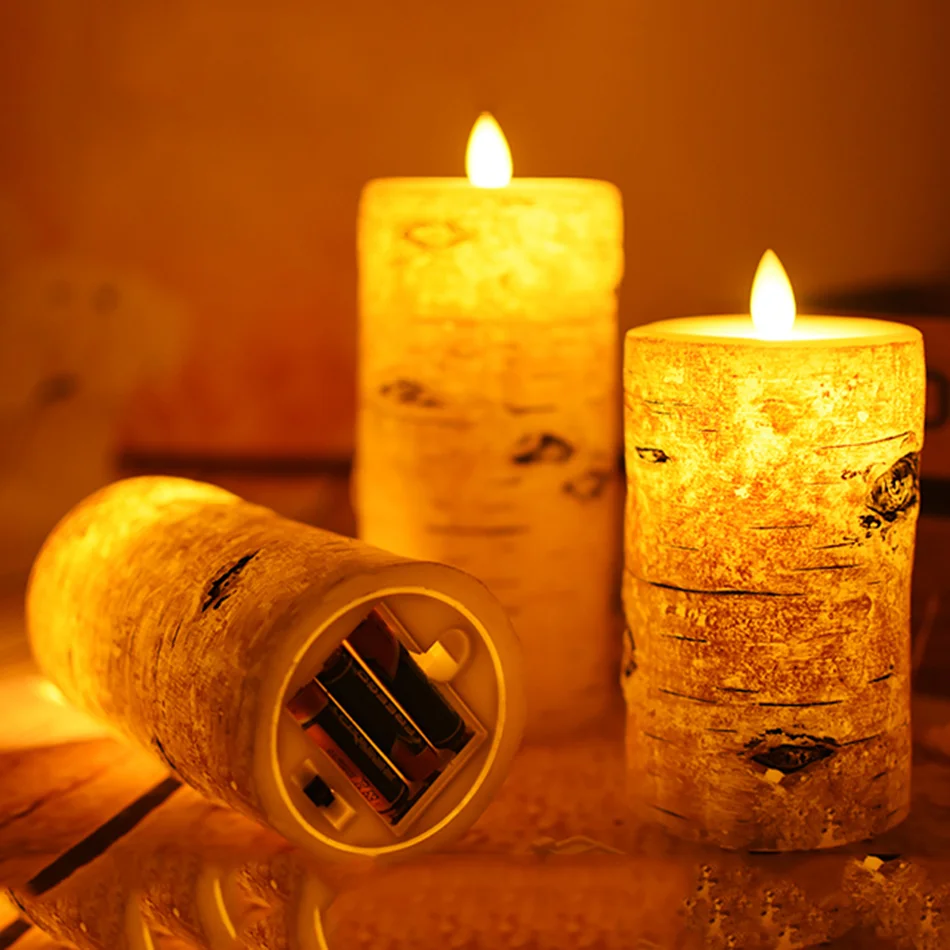 Product Name: Kory brzozowa efekt filar świeczki led światła, bateria wosk parafinowy led świeca na lampki świąteczne wystrój., domu lampka nocna do pokoju