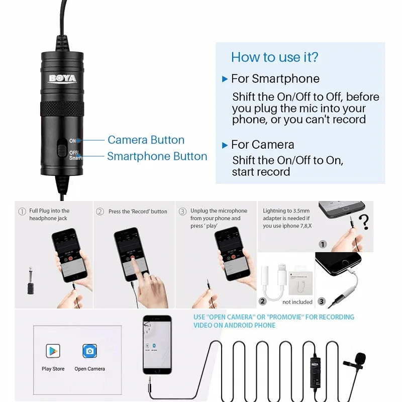 Product Name: BOYA BY M1DM mikrofon krawatowy 4m wielokierunkowy klips na klapie mikrofon wideo dla iPhone Canon Nikon DSLR, zaktualizowany BY M1