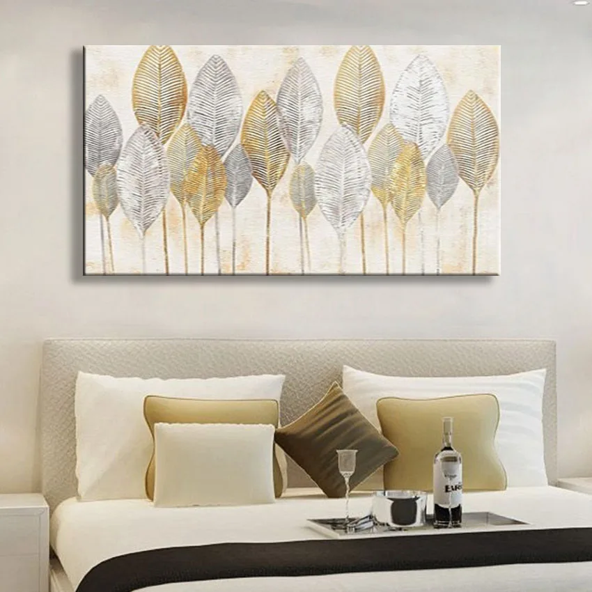 Product Name: Gorąca sprzedaż 100% ręcznie malowany obraz olejny na płótnie złoty i srebrny liść obraz na ścianę do salonu sypialni nie oprawione