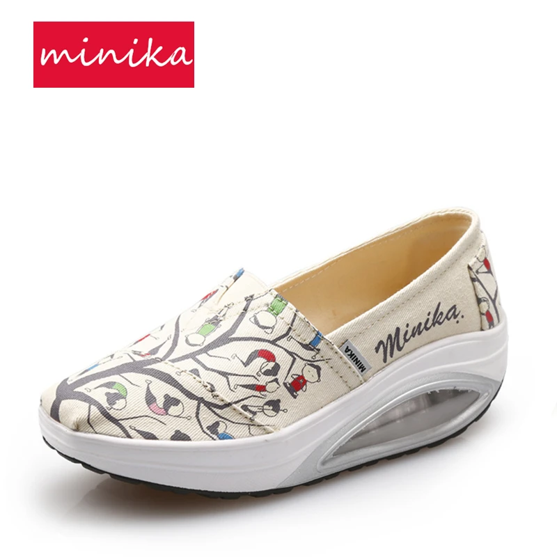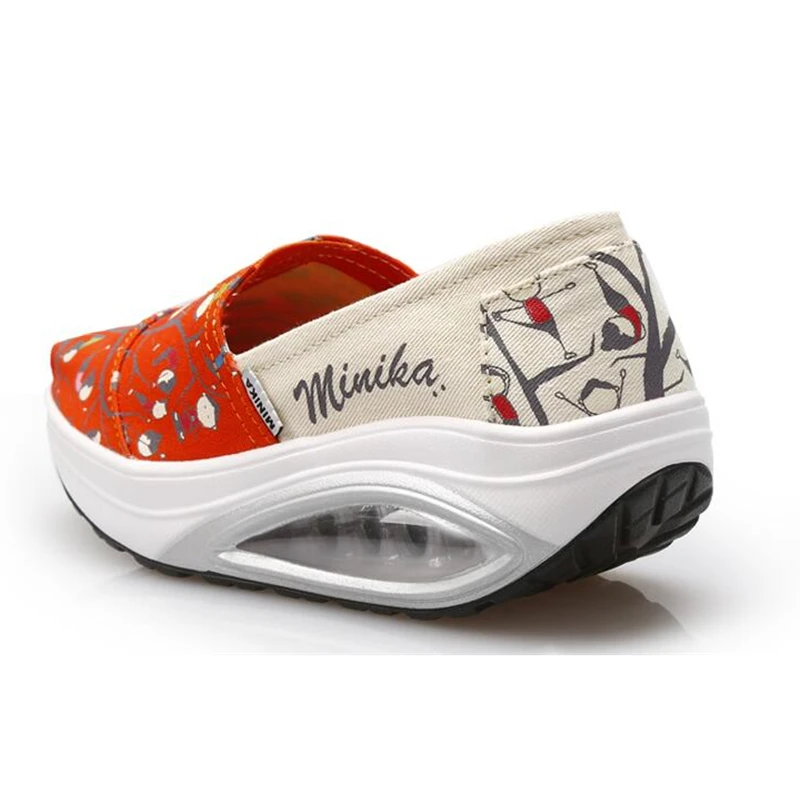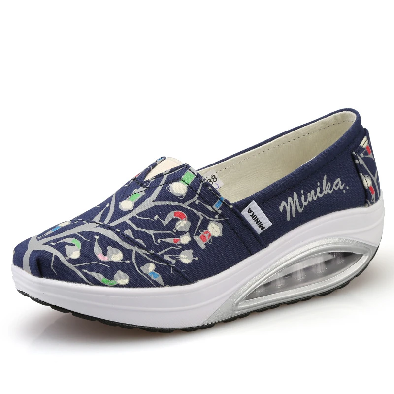 Special Offer Na płótnie kobiety Toning buty poduszki antypoślizgowe odchudzanie buty drzewo drukowane grube podeszwy wysokość zwiększenie kobiet huśtawka buty Discount 20% Today!