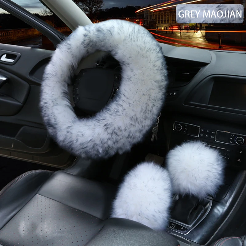 Product Name: 3 sztuk samochodów sztuczne wełny KIEROWNICA zimowe ciepłe pluszowe pokrywa Cap Auto pokrowce na koła kierownicy Protector Decor akcesoria