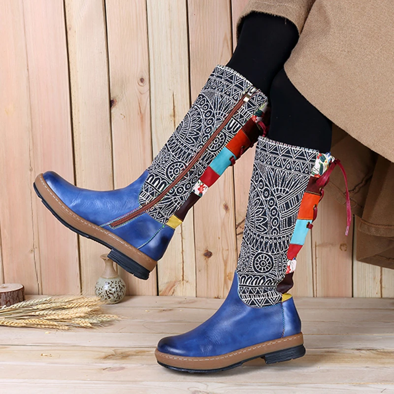 Special Offer Vintage połowy łydki buty damskie buty czeski Retro buty motocyklowe z prawdziwej skóry z nadrukiem z boku na zamek błyskawiczny powrót Lace Up Botas R2 52 Discount 20% Today!