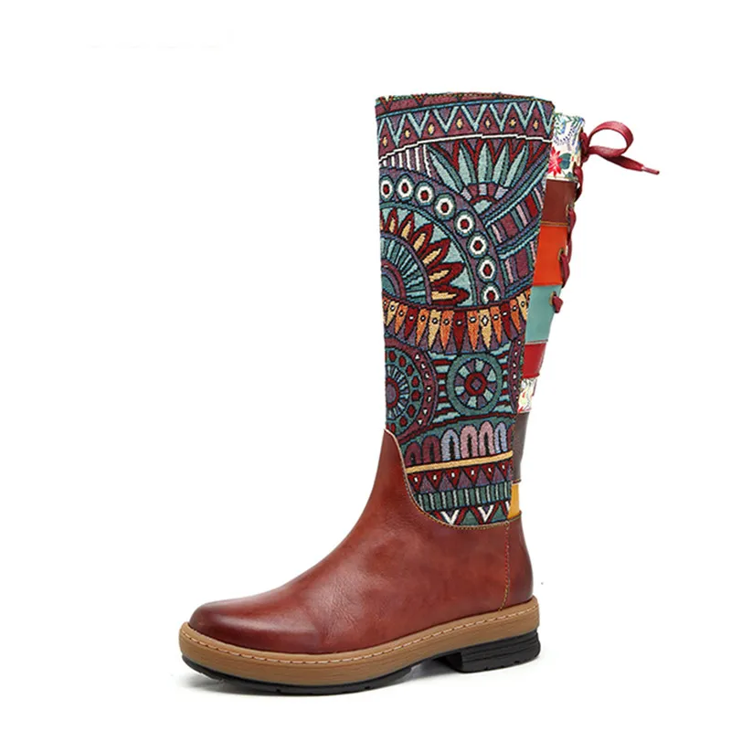 Product Name: Vintage połowy łydki buty damskie buty czeski Retro buty motocyklowe z prawdziwej skóry z nadrukiem z boku na zamek błyskawiczny powrót Lace Up Botas R2 52