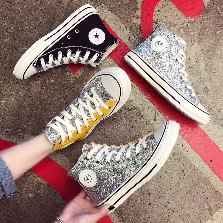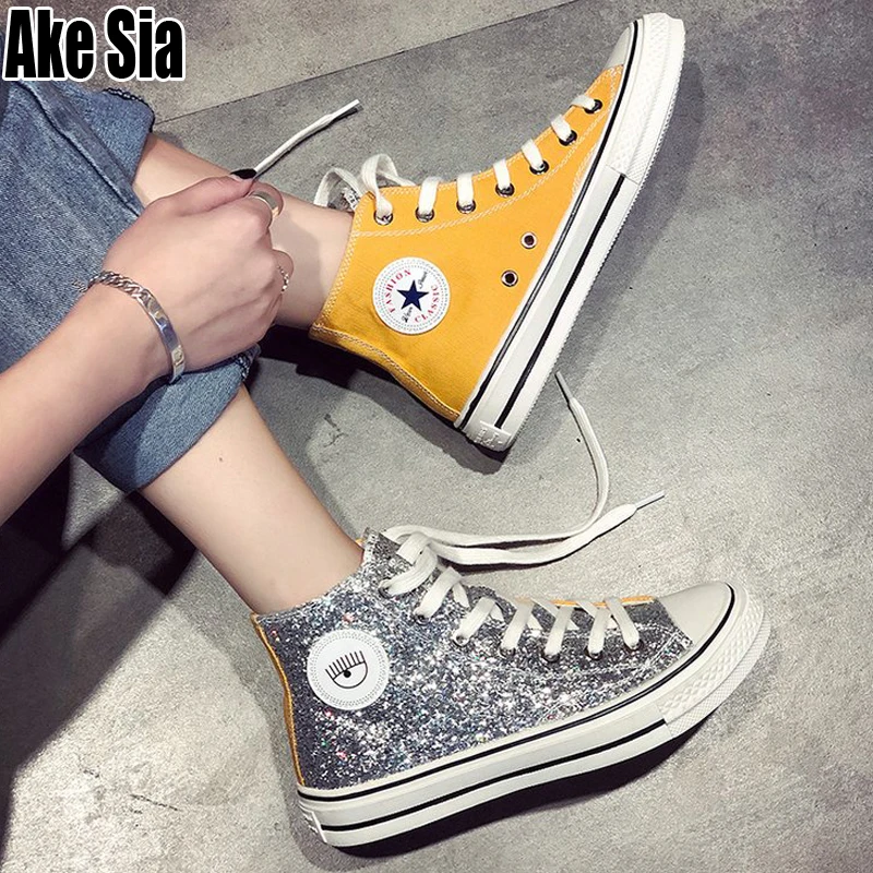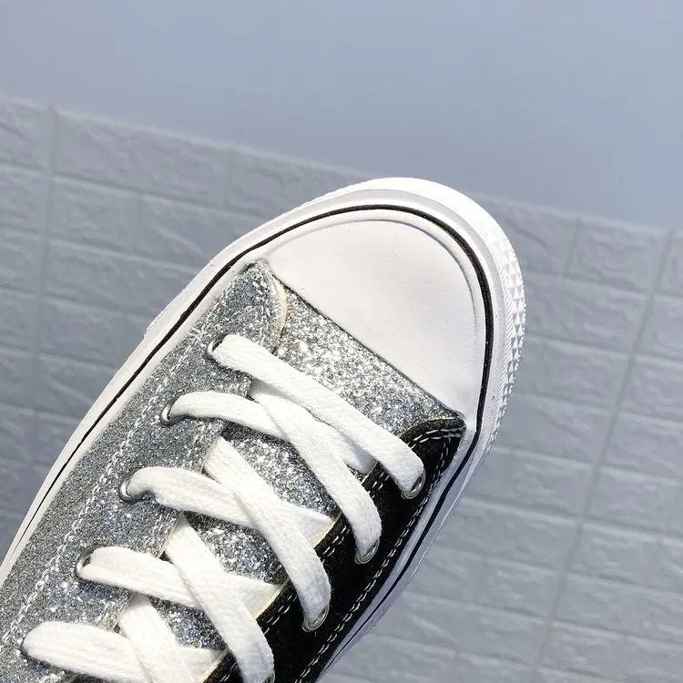 Product Name: Kobiety moda Lady kobieta na płótnie sznurowadło Lace Up Plimsolls chodzenia Zapatillas Mujer płaskie na co dzień cekiny Tenis cekiny buty C125