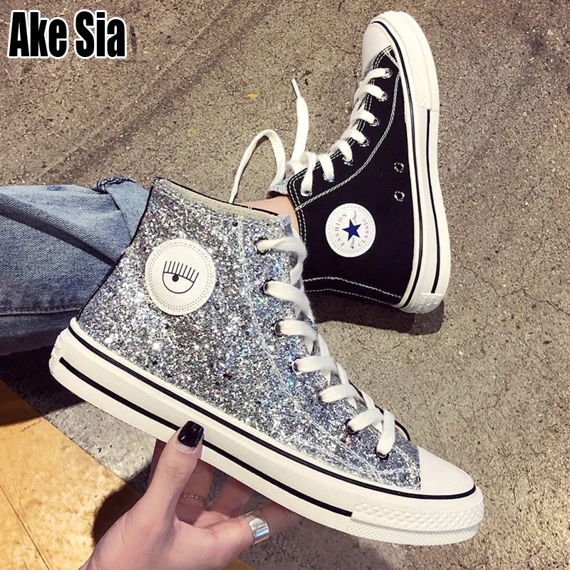 Special Offer Kobiety moda Lady kobieta na płótnie sznurowadło Lace Up Plimsolls chodzenia Zapatillas Mujer płaskie na co dzień cekiny Tenis cekiny buty C125 Discount 30% Today!