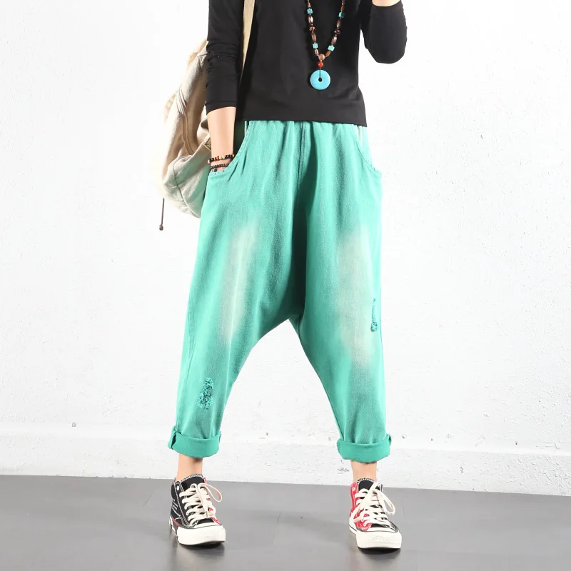 Special Offer W stylu bf spadek krocza Harem spodnie dżinsowe Baggy cukierkowe kolory dżinsy hip hop kowbojskie Bloomers biegaczy w pasie spodnie kowbojskie Discount 30% Today!