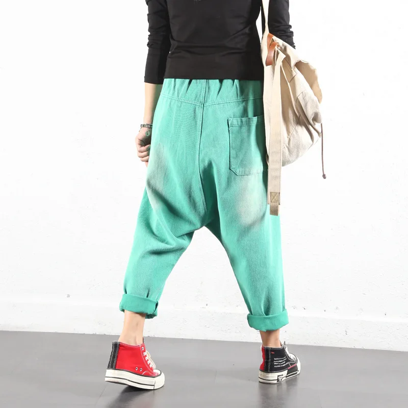 Product Name: W stylu bf spadek krocza Harem spodnie dżinsowe Baggy cukierkowe kolory dżinsy hip hop kowbojskie Bloomers biegaczy w pasie spodnie kowbojskie