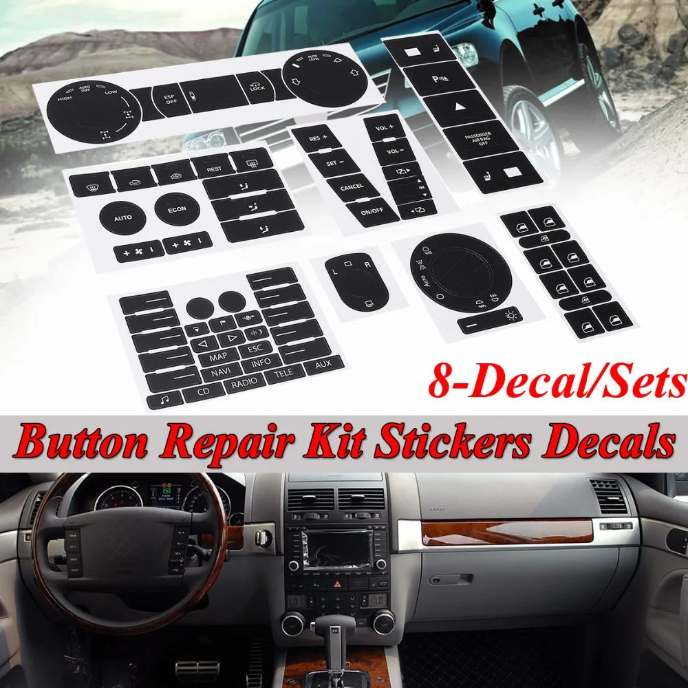 Product Name: 8 sztuk samochodów kierownica Windows reflektor przełącznik klimatu noszone przycisk naprawa naklejki kalkomanie dla VW dla Volkswagen Touareg 04 09