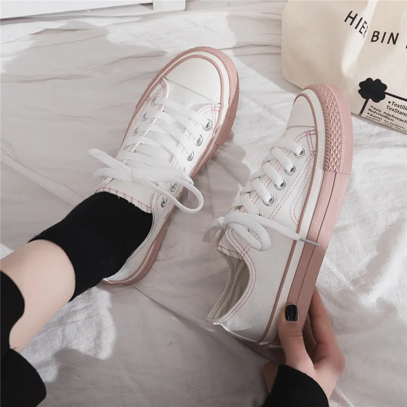 Special Offer Damskie trampki 2019 nowa wiosna koreańskie brezentowe buty dla kobiet buty szkolne w stylu casual Lace Up Girl różowe buty stylowe wszystkie mecze Discount 38% Today!