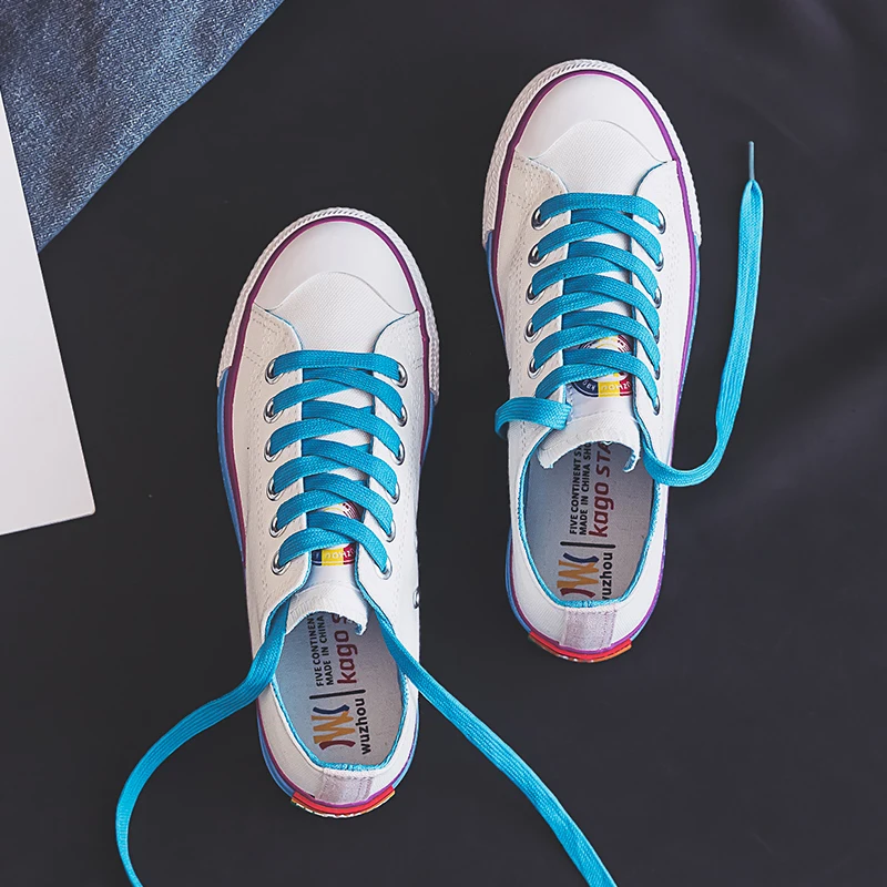 Special Offer Modne damskie buty 2019 Antumn Rainbow tenisówki damskie moda Casual Retro nowe trampki płaskie płytkie buty wulkanizowane damskie Discount 40% Today!