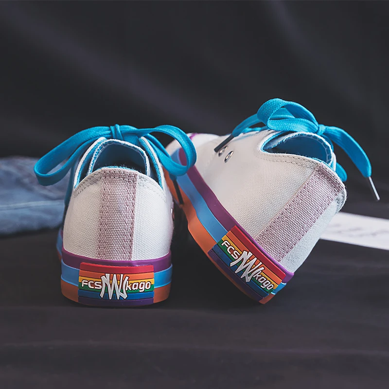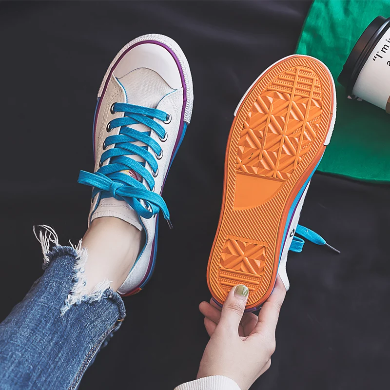 Product Name: Modne damskie buty 2019 Antumn Rainbow tenisówki damskie moda Casual Retro nowe trampki płaskie płytkie buty wulkanizowane damskie