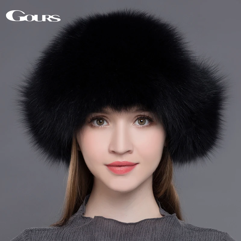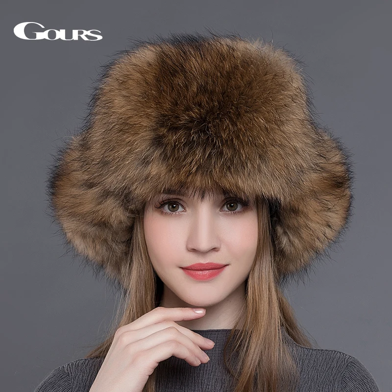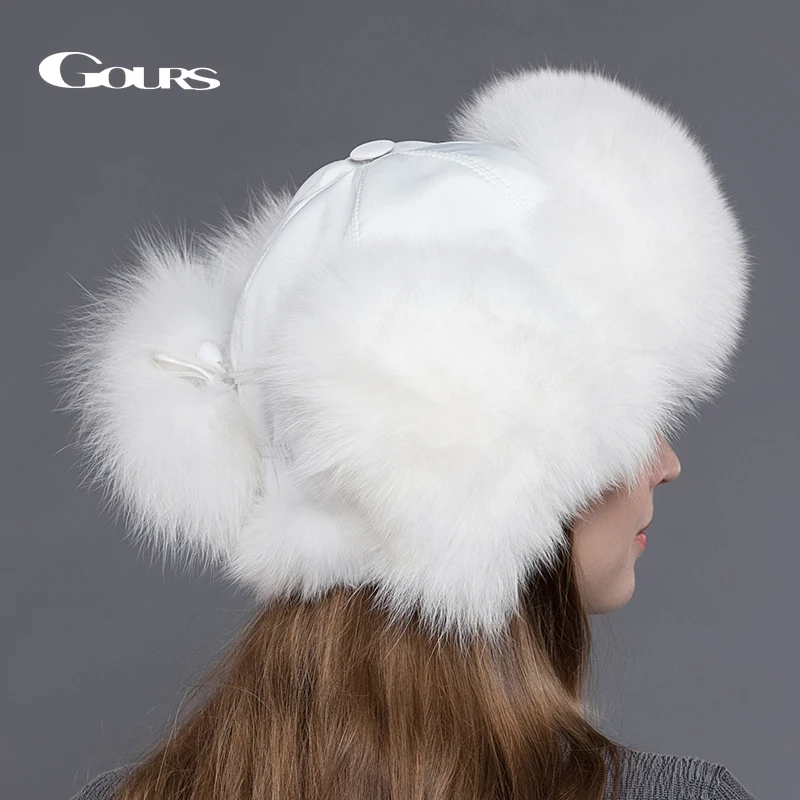 Special Offer Gours futro kapelusz dla kobiet naturalne futro szopa futro rosyjska uszanka czapki zimowe grube ciepłe uszy moda Bomber Cap czarny New Arrival Discount 45% Today!