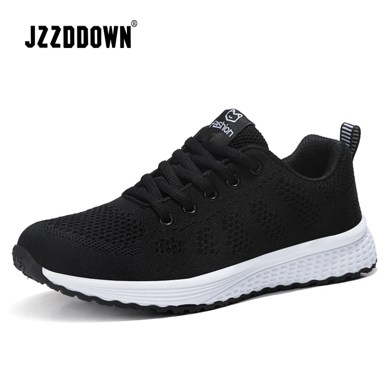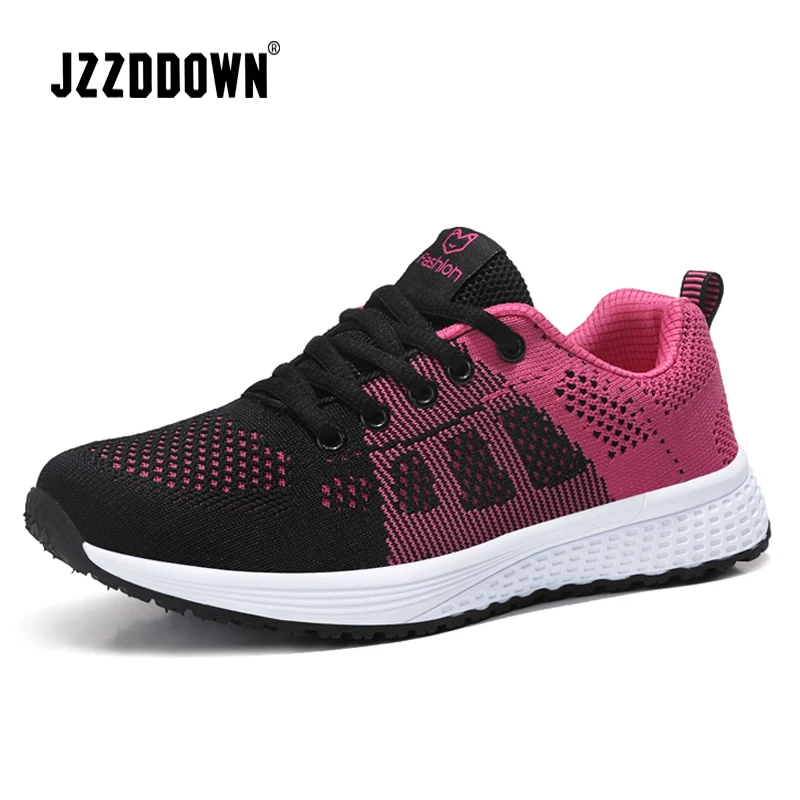 Product Name: Jzzddown kobiety obuwie Flyknit oddychające kobiety trampki Walking mesh zasznurować płaskie buty trampki kobiety tenis feminino
