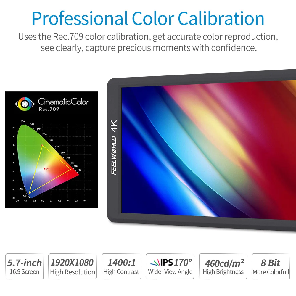 Special Offer Feelworld F570 5.7 \"IPS Full HD 1920x1080 4K HDMI monitor zewnętrzny do aparatu Canon Nikon Sony DSLR uchwyt do kamery ze stabilizatorem Discount 0% Today!