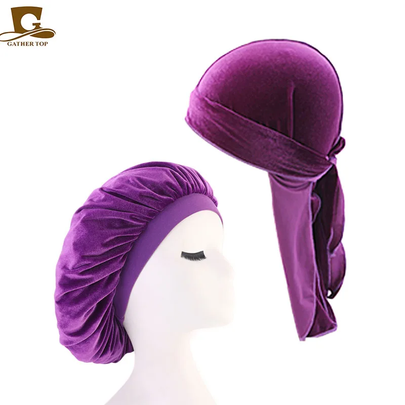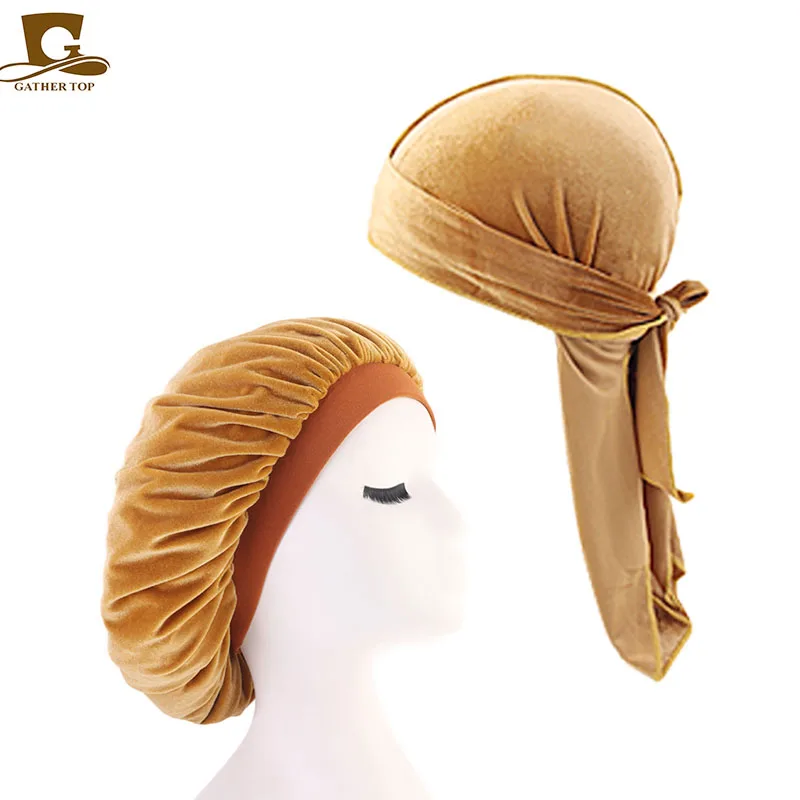 Product Name: Para 2 sztuk nowych mężczyzna aksamitna Durag Bandana nakrycia głowy czysty kolor szeroki Doo wytycznych w sprawie pomocy regionalnej czapka z daszkiem czapka z daszkiem wygodne aksamitne do spania kapelusz