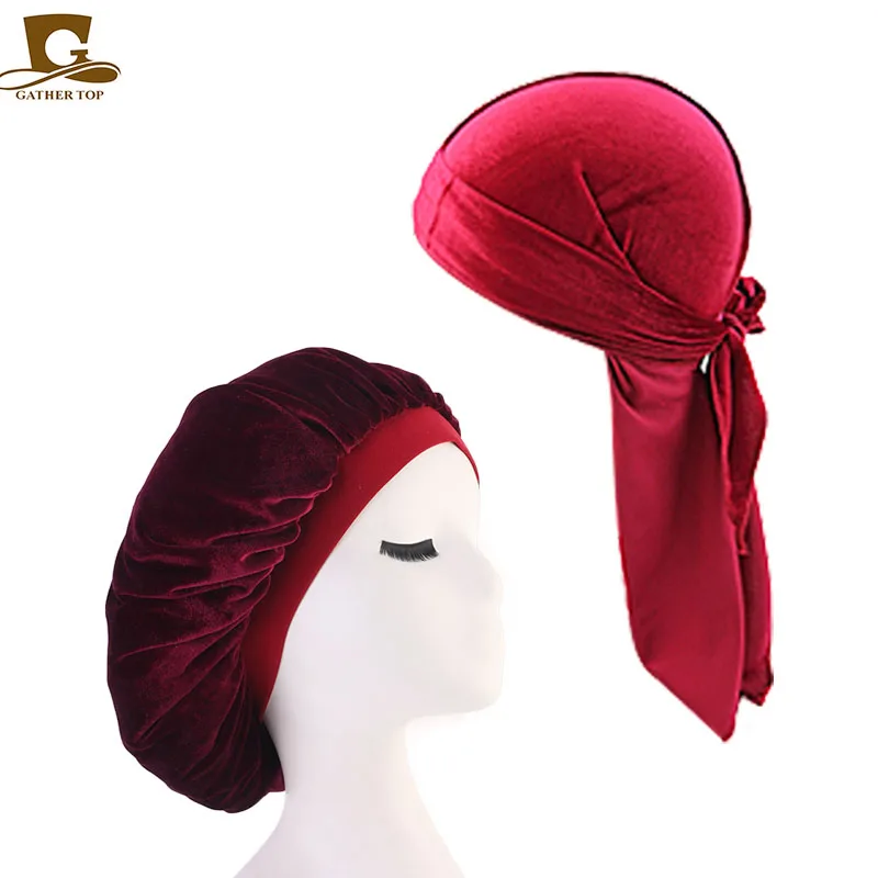 Special Offer Para 2 sztuk nowych mężczyzna aksamitna Durag Bandana nakrycia głowy czysty kolor szeroki Doo wytycznych w sprawie pomocy regionalnej czapka z daszkiem czapka z daszkiem wygodne aksamitne do spania kapelusz Discount 14% Today!