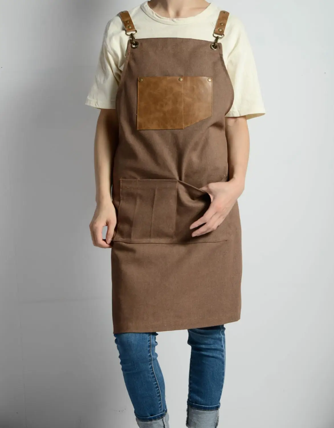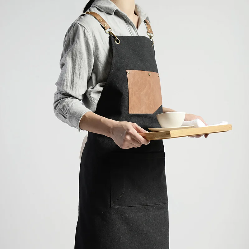 Product Name: Moda regulowany PU fartuch płócienny kawy fryzjer sklep fartuchy na szelkach gotowanie kuchenne fartuchy dla kobiety mężczyzna pracy fartuch z kieszeniami