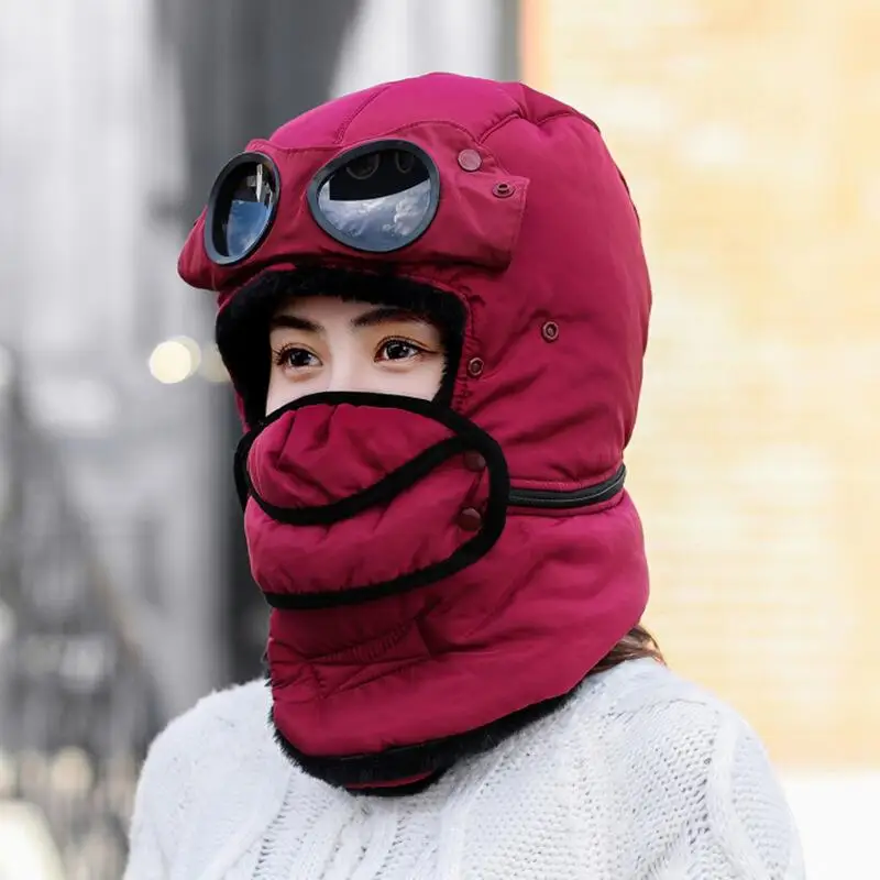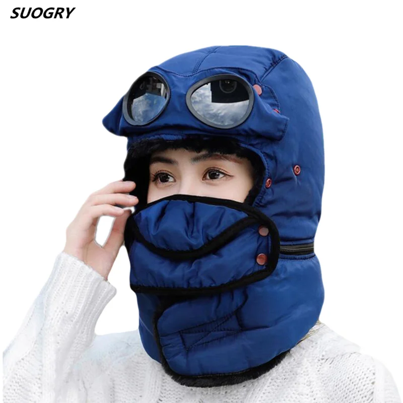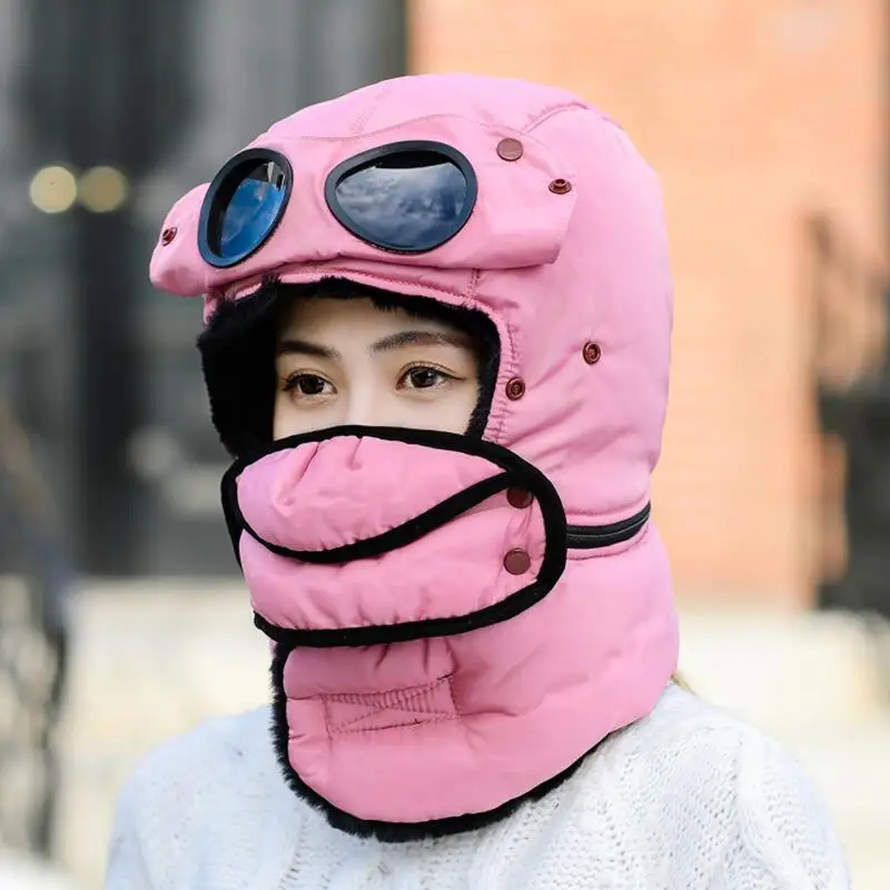 Product Name: Zimowe Bomber kapelusze pluszowa czapka rosyjski traper uszanka z okulary mężczyźni kobiety Pilot Aviator ze sztucznej skóry futro kapelusz czapki zimowe