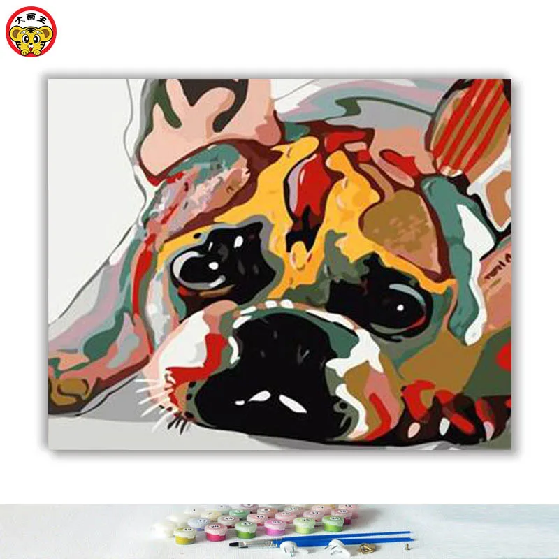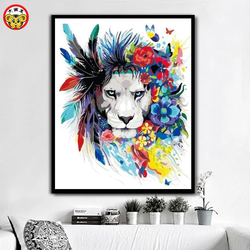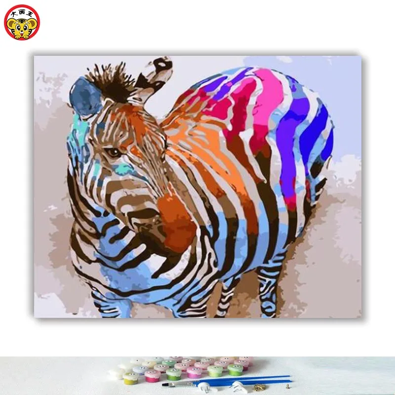 Product Name: Farby według numeru Diy kolorowe zwierząt lew pies zebra obraz olejny ręcznie wypełniony kolor malowanie dekoracji obraz olejny
