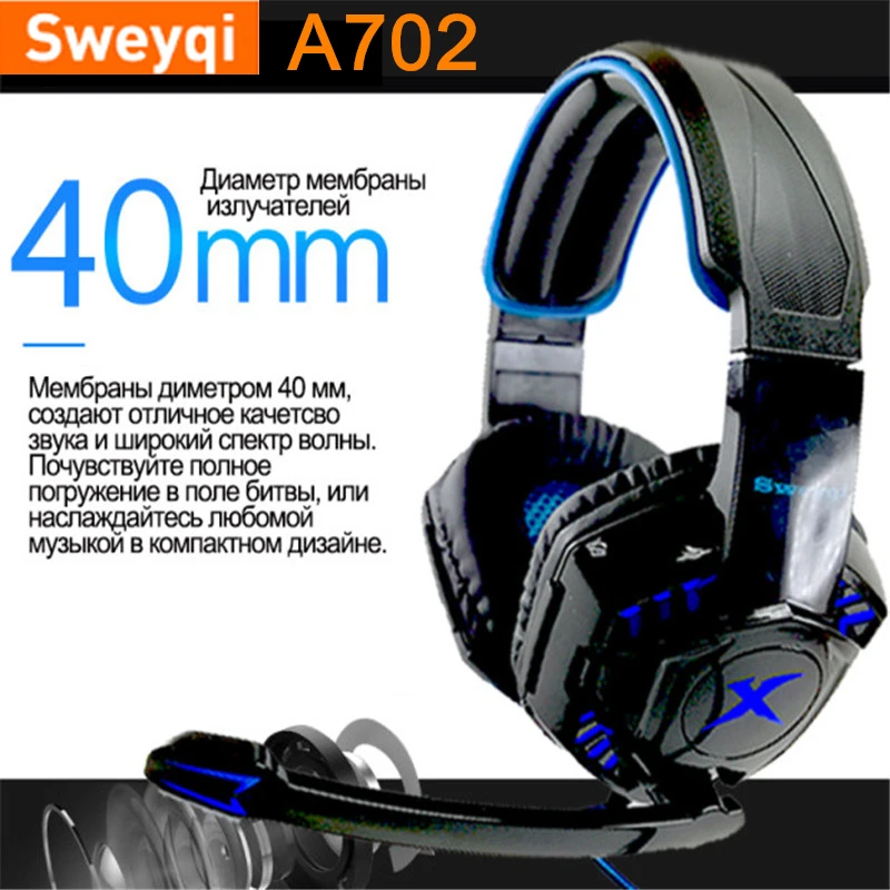 Product Name: Gorąca wyprzedaż! Sweyqi A702 A701 słuchawki gamingowe PC PS4 XBOX wysokiej jakości stereofoniczne słuchawki z mikrofonem LED z redukcją szumów